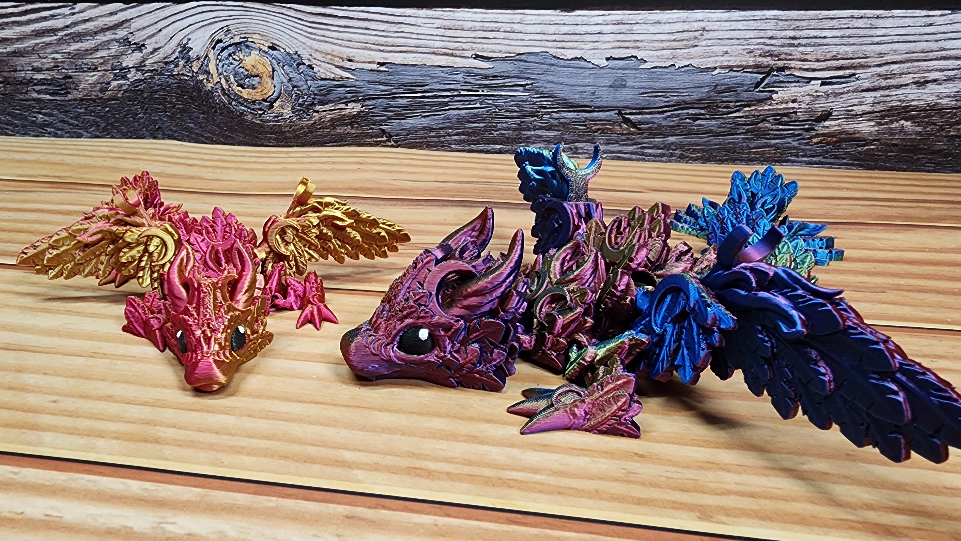 Crafted with passion using top-of-the-line 3D printers, our dragons boast unparalleled quality. With a vast palette, we showcase popular and unique colors! Dive into Magic, TriMagic, Rainbow, and Gradient hues, each bearing unique finishes that make these dragons stand out.