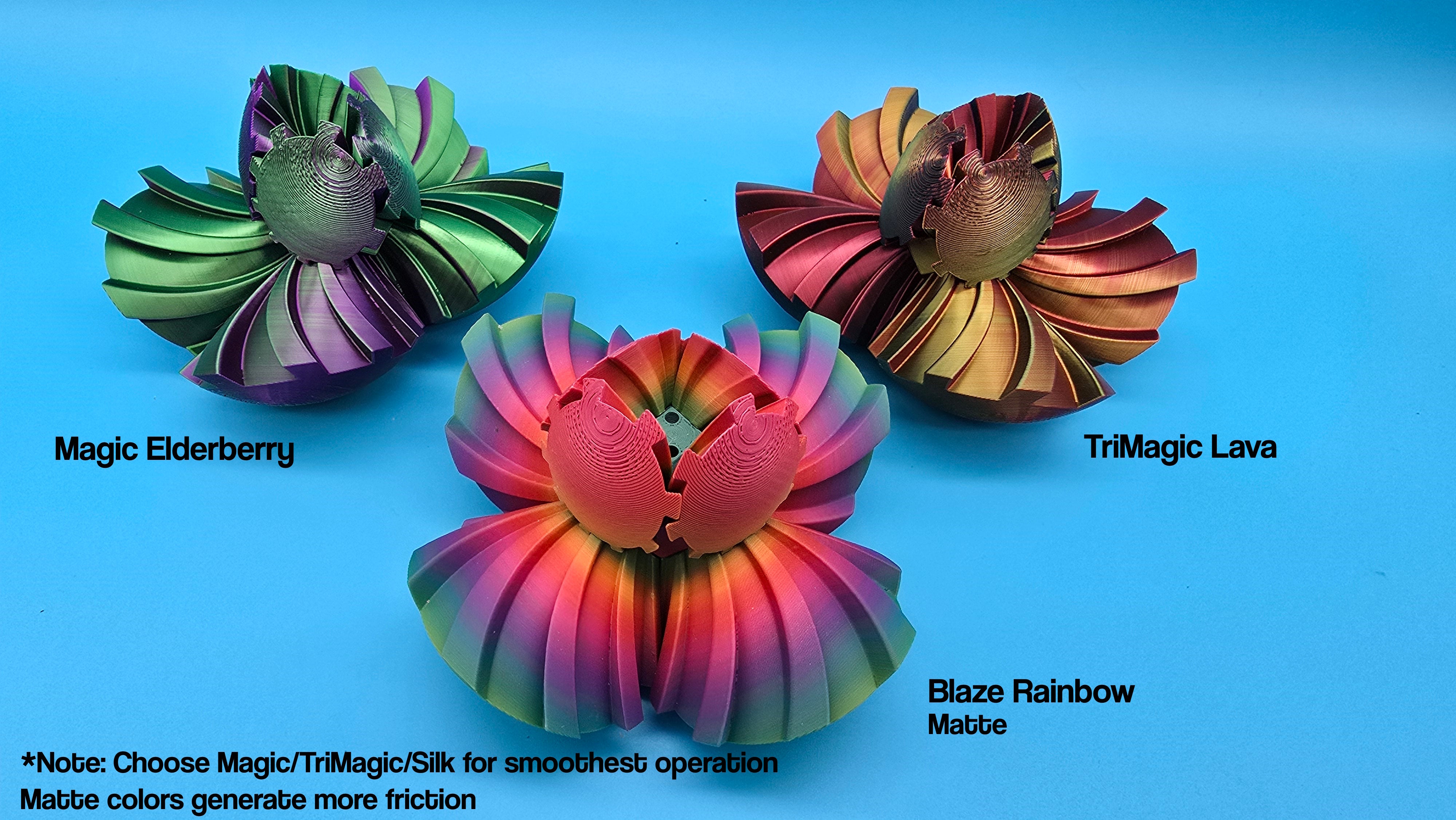 Crafted with passion using top-of-the-line 3D printers, our fidgets boast unparalleled quality. With a vast palette, we showcase popular and unique colors! Dive into Magic, TriMagic, Rainbow, and Gradient hues, each bearing unique finishes that make these fidgets stand out.