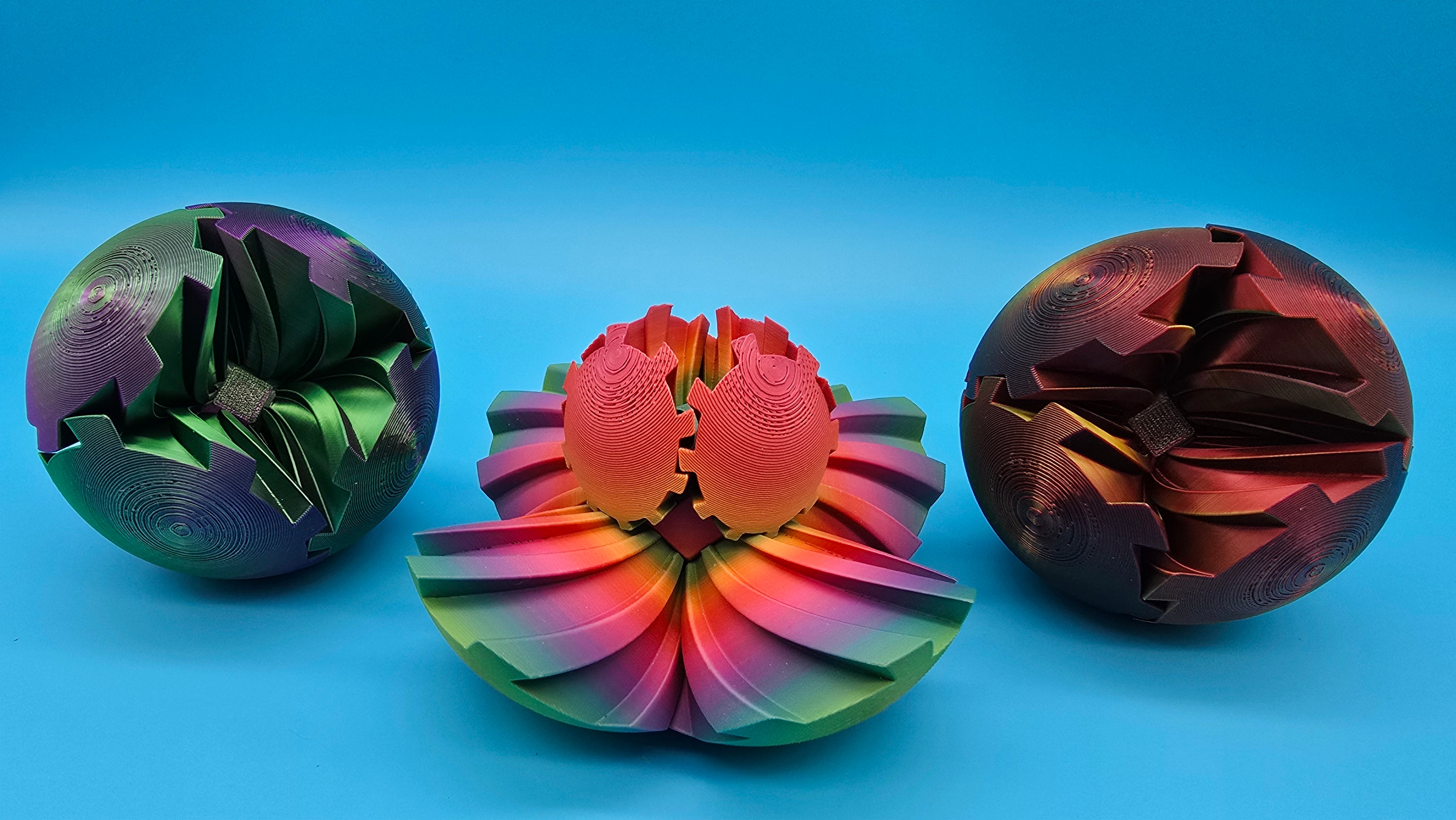 Transform your desk with the Gear Ball, a 3D printed stress relief toy that twists and morphs into endless shapes. Made from vibrant gradient materials, it offers both entertainment and a stunning visual element for any workspace.