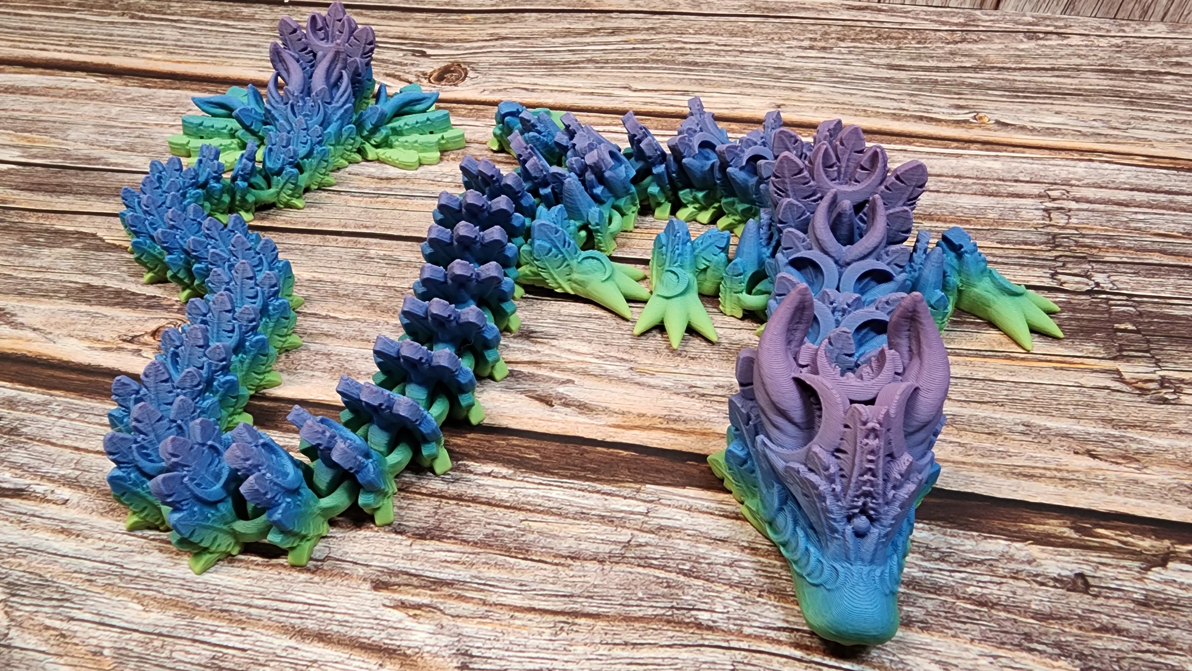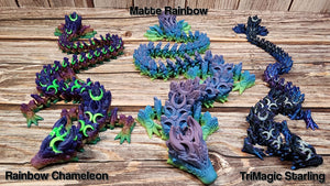 The intricately detailed Lunar Dragon is here. Boasting a long and flexible design that is detailed with moons across the entire body. Looks great in single color, but truly pops in the colored moons style. You'll love this dragon any color, but even more so in our shiniest colors. Our color select is unmatched, adding new colors frequently.