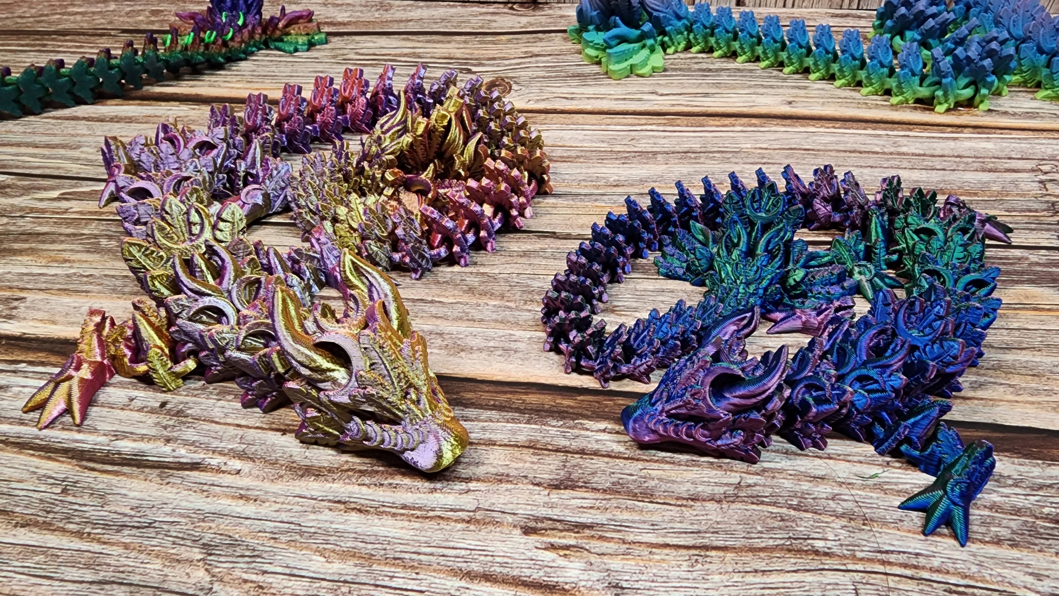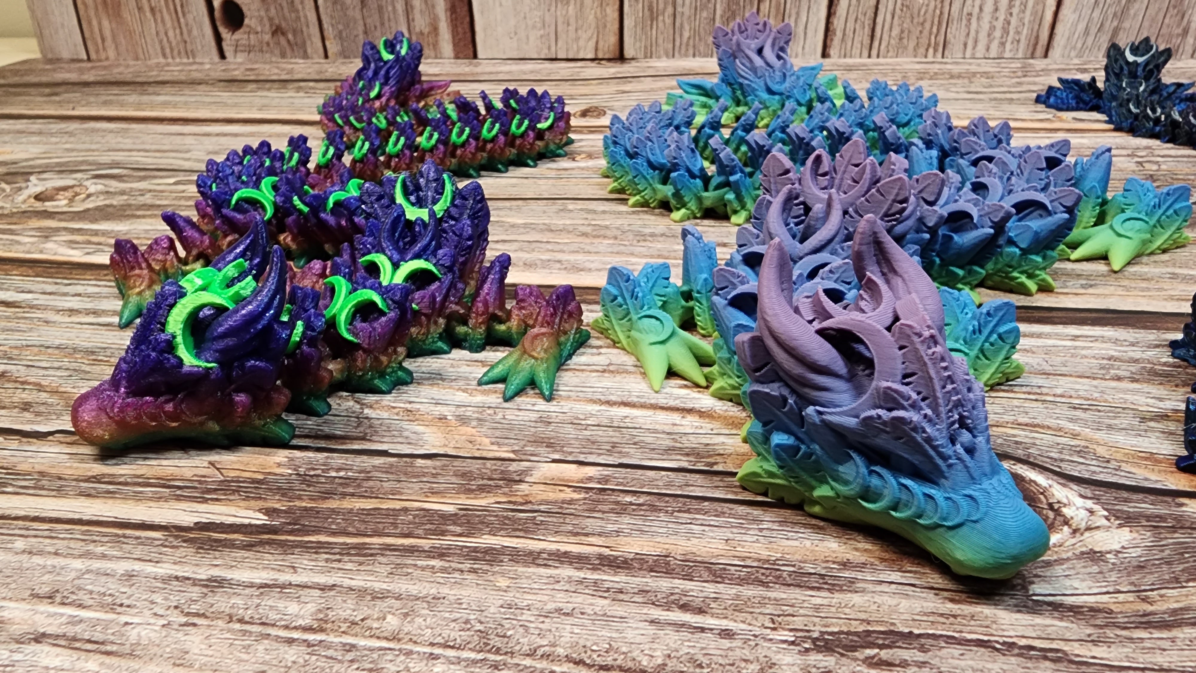 Crafted with passion using top-of-the-line 3D printers, our dragons boast unparalleled quality. With a vast palette, we showcase popular and unique colors! Dive into Magic, TriMagic, Rainbow, and Gradient hues, each bearing unique finishes that make these dragons stand out.