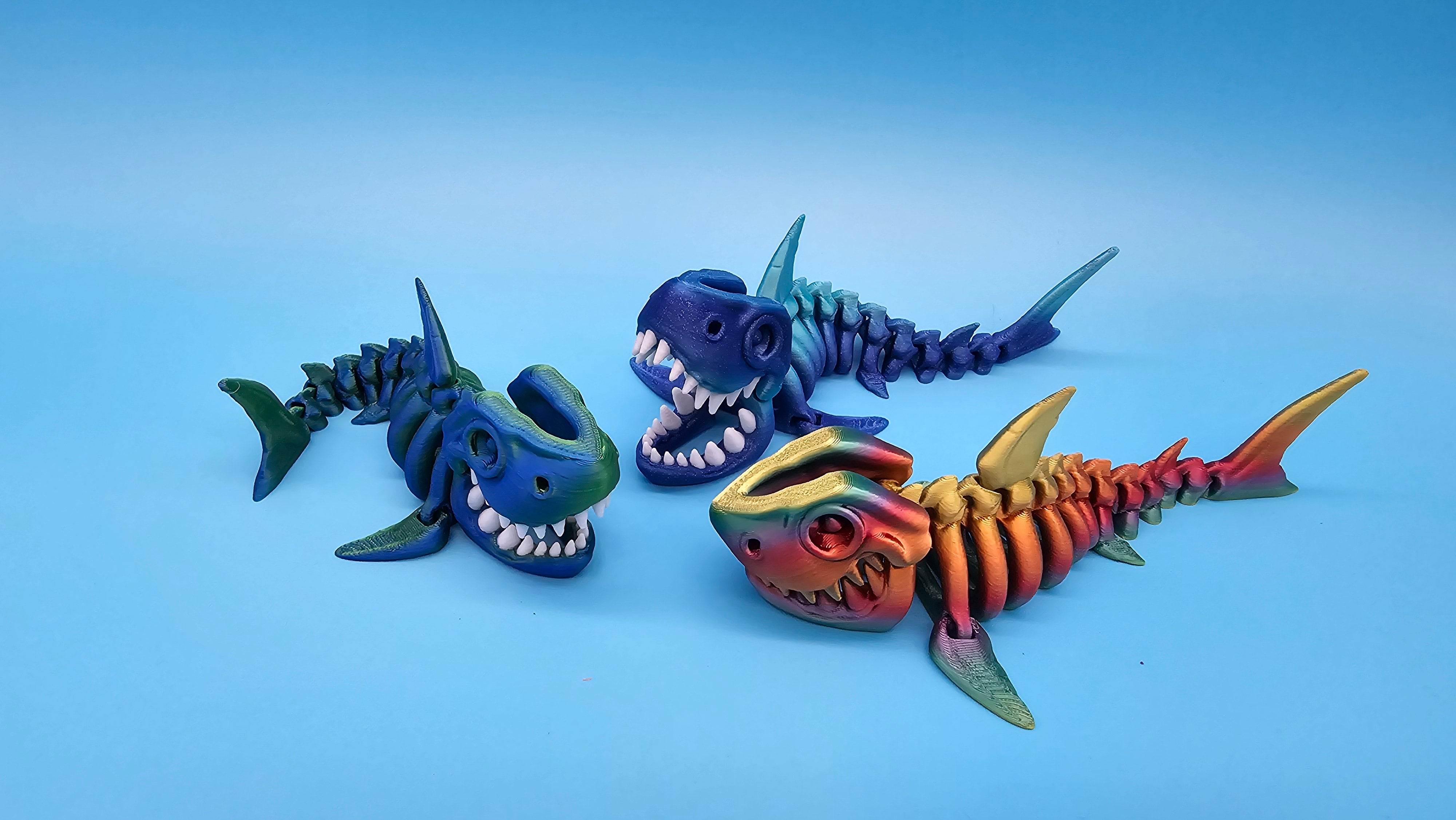 Crafted from high-quality materials, this shark skeleton is built to last. And with its movable joints, you can pose it in a variety of ways to create your own adventure. But that's not all! This shark also looks fintastic in our rainbow, magic, and triMagic materials. With a colorful and vibrant design, it's sure to make a splash in any collection.