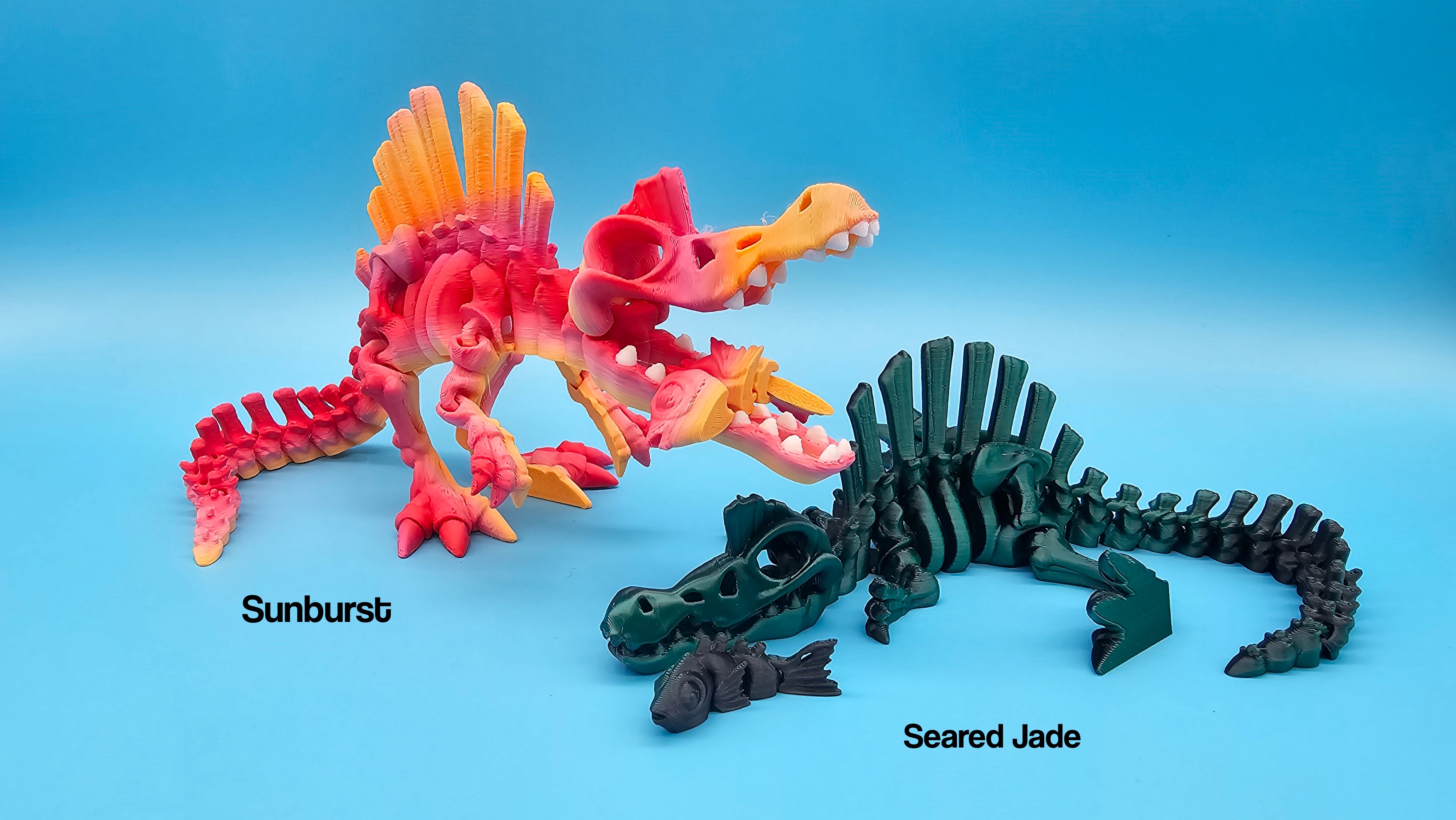 Crafted from high-quality materials, this Spinosaurus skeleton is built to last. And with its movable joints, you can pose it in a variety of ways to create your own adventure. But that's not all! This t-rex also looks rawrastic in our rainbow, magic, and triMagic materials. With a colorful and vibrant design, it's sure to make a splash in any collection.