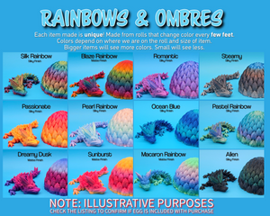 Crafted with passion using top-of-the-line 3D printers, our dragons boast unparalleled quality. With a vast palette, we showcase popular and unique colors! Dive into Magic, TriMagic, Rainbow, and Gradient hues, each bearing unique finishes that make these dragons stand out.