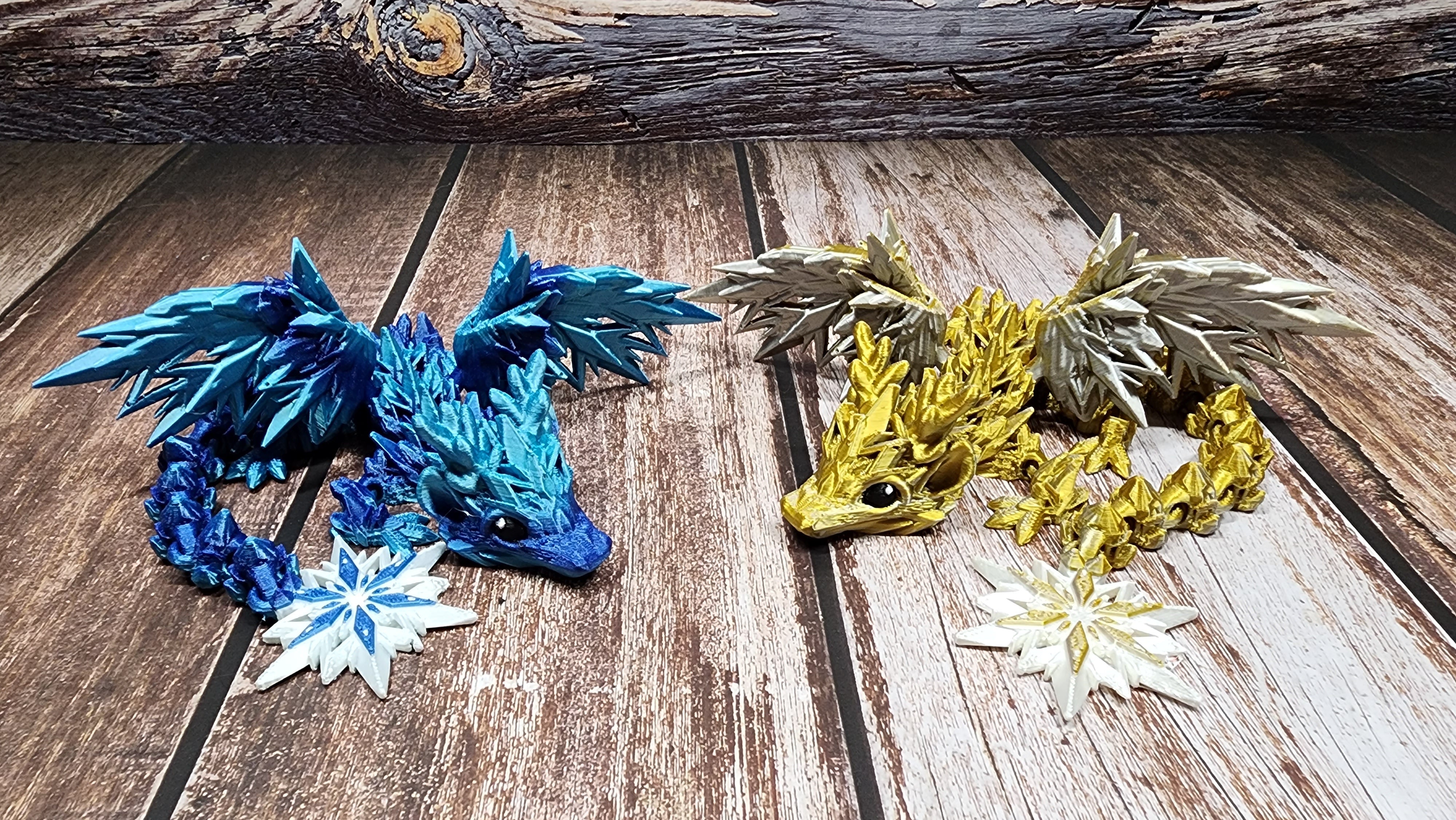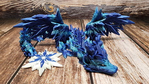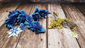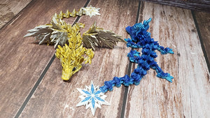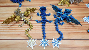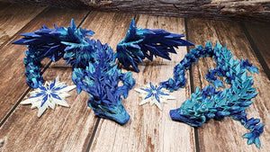 Beautifully crafted icy wonder, articulated winter dragons. Meticulously designed to mirror the intricate shape of a snowflake, these dragons are a fusion of nature's beauty and imaginative artistry.